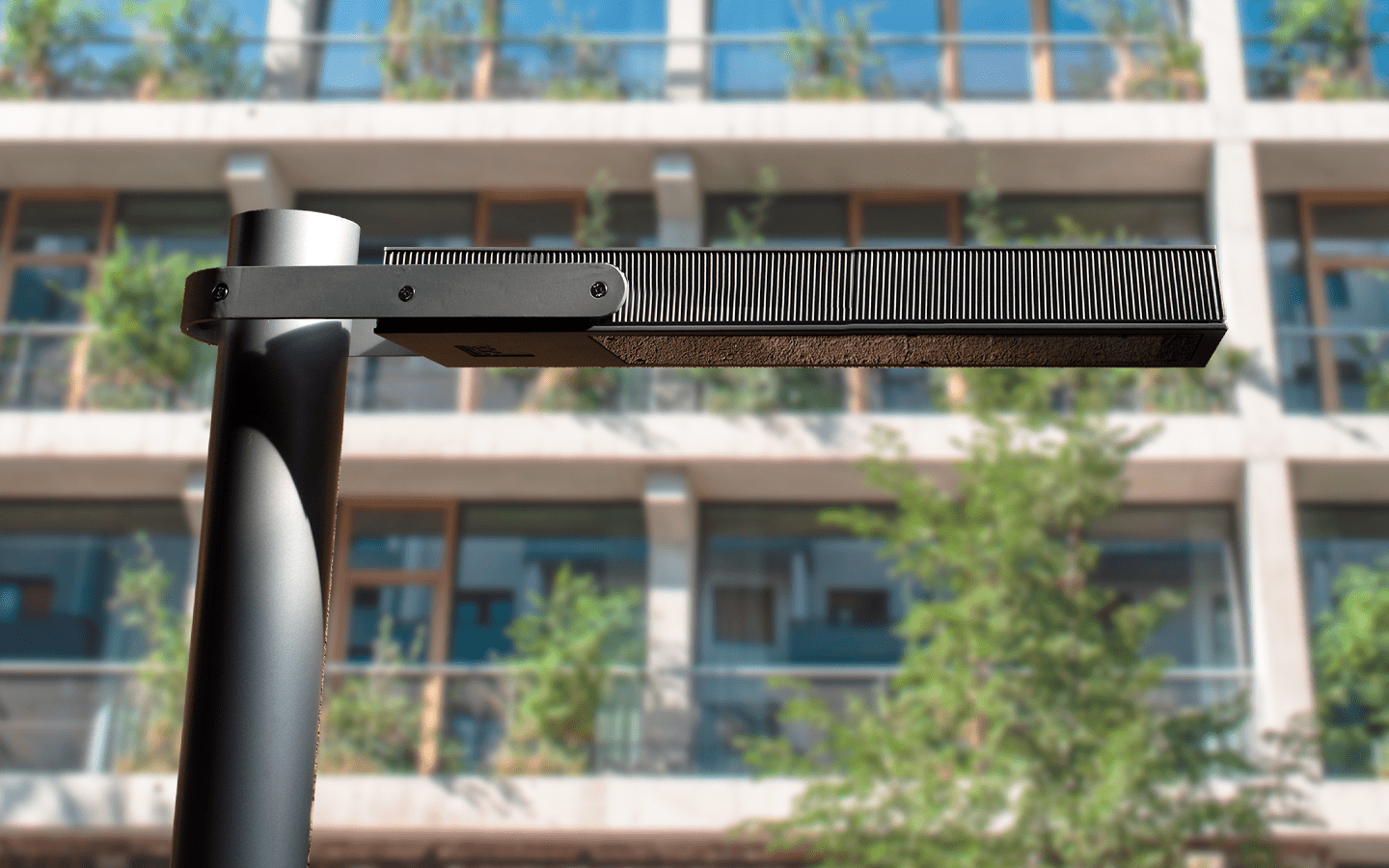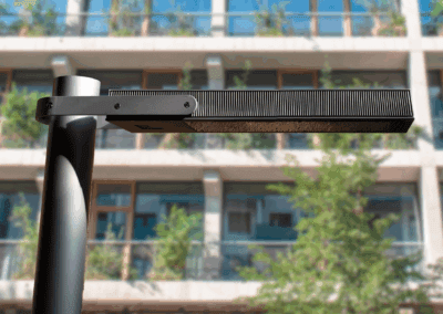 La luminaria TETRIS cuenta con palanca ergonómica de accionamiento manual y barra de seguridad anit-cierre, para poder realizar las tareas de mantenimiento de forma cómoda y más segura, sin necesidad de desinstalar la luminaria y siempre en posición horizontal.